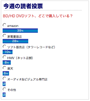 BD/HD DVDはamazonで −「今週の読者投票」結果発表(11/27〜12/4)