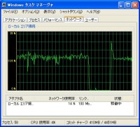 転送速度とパフォーマンスをタスクマネージャで監視して、無線LAN通信時の状況をより細かく分析してみた。AVCHDの転送時のネットワークでは、ビットレートである12.9Mbpsとはほぼ同じストリームが流れている。このときのCPU負荷はほとんどない。つまり、まったく変換せずにそのまま転送しているのである。これはリンクシアター自体がAVCHDのデコードに対応しているが故にできることである。