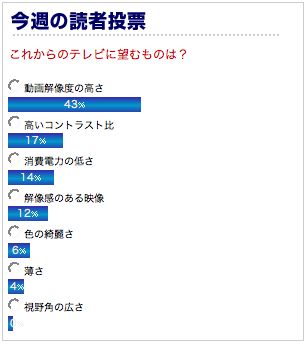 テレビに望むのは動画解像度向上 −「今週の読者投票」結果発表(1/15〜1/22)