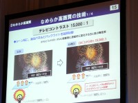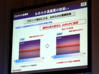 もうひとつの「なめらか高画質」技術である「12ビットBDE」は、人の視覚特性を利用した同社独自のアルゴリズムにより、RGBの各色を12ビット相当の階調に拡張して表示するというもの。特に青空や夕焼けなどのグラデーション部分などを、滑らかで自然に表現することができるという。