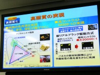 坂本氏は、大画面薄型テレビについて、今後は液晶の方がプラズマより優位に立つとの一部報道に対し、「これらはすべて、製造コストでプラズマが液晶に負けるという前提の上に立っている。今回のシングルスキャン化により、コスト面でも勝っていく」と反論。また、PDPの売り上げが鈍化しているのでは、という記者の質問に対しては、「昨日、昨年10〜12月期のDisplay Searchの集計がまとまったが、PDPは前年比で162%の売り上げを記録している。また、LGが再び32インチのPDPを発売して売れているというデータもある。さらに今後1年〜1年半程度のあいだで、あるサイズのLCDが不足してくるはずだ」とし、プラズマテレビ売り上げの失速を強く否定した。