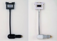 本機は、電源にDC12/24Vシガーソケットを使用する車載用FMトランスミッター。アームの先端にドックコネクタとトランスミッターを配置し、自由な角度に調整して使用することが可能だ。