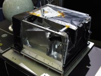 月の軌道上を周回する衛星「かぐや」に搭載された、耐環境性の高いハイビジョンカメラが特別展示された。システム内には望遠と広角の2台のカメラを装備しており、それぞれ常に地平線を撮影できる角度に調整されている。システム全体は、真空状態や放射線に耐えられる設計で、日向と日陰の300度の温度差にも対応。また、ロケット打ち上げ時の振動や衝撃に対応できる耐久性も実現しているという。