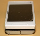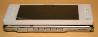 これに対して、P905iTVはスライド型であり、液晶ディスプレイが常に露出する形状になっている。スライドオープンした状態ではワンセグ画面は縦表示だが、クローズすると横画面に切り替わる。P905iTVは特に背面にスタンドがついているわけではないが、横にしても比較的安定して立てておける。