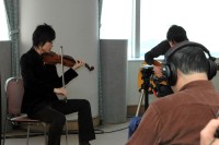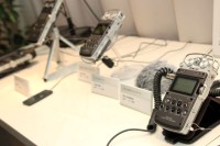 オーディオ系の機器を揃えた部屋では、同社のポータブルリニアPCMレコーダーを使った生録体験デモを実施。ギターとバイオリンのデュオが演奏した音声を来場者が録音し、それを同社のオーディオ機器で再生するというもので、マイクの調整の方法などレコーダーの操作方法の説明に、来場者は熱心に耳を傾けていた。