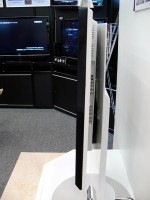 昨年秋のCEATECにも参考出品した37mmの超薄型液晶テレビを展示ブースに出品。「チューナー内蔵テレビとしては最薄」を誇る本機は、欧州、アジアでは3月より販売が開始される。なお同地区で発売されるモデルは、最薄部39mmという仕様になっている。国内では年内発売を目指しているという。