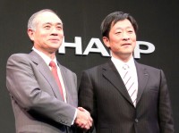 本日夜、ソニー代表執行役社長の中鉢良治氏、シャープ代表取締役社長の片山幹雄氏が共同会見を行った。中鉢氏は液晶テレビセットで世界一を目指す考えを表明し、一方の片山氏は、液晶パネルメーカーとして世界一となる意気込みを強調した。