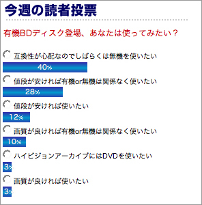 3月3日〜3月10日の読者投票:「有機BDディスク登場、あなたは使ってみたい?」