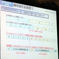 映像エンジンとして「DIAMOND Engine PRO II」を搭載し、120Hz表示に対応。24p入力には対応しないが、24p映像を2-3プルダウンした60p映像から元の24p映像を割り出し、120p(24×5)表示する「フィルムモード」に加え、24pの各フレーム間に4フレーム分の映像を新たに生成し、120p映像として再生する「なめらかモード」を搭載している。