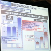 パネル内部からの光の散乱を低減する独自の光沢コートを施した新「DIAMOND Panel」を採用。暗部コントラスト比を従来比50%アップとなる3,000対1まで向上させた。また、低反射コートにより、一般的なリビング環境(照度200ルクス程度)でも従来比1.5倍となる1,800対1のコントラストを保持。「一般家庭の視聴でも高コントラストで深みのある黒を実現する」(同社)という。