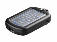 本体にはBluetooth機器の操作ができる6つのボタンを装備。ブルー、グリーンのLEDを内蔵しており、通信状況や充電池残量などを表示することが可能だ。また、音楽再生時に携帯電話が着信すると、再生を一時停止し会話に切り換える機能を搭載している。