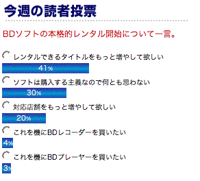 BDレンタル開始は「もっとタイトル増やして」 −「今週の読者投票」結果発表(3/24〜3