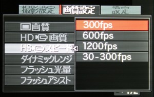 ところで、このF1のハイスピード撮影にはフレームレートの異なる3つのモードがあるが、それぞれのモードで撮影解像度が変わる。撮影時は、液晶ディスプレイ上に撮影されるフレームが表示されるのだが、1200fpsでのフレームはあまりに狭く、この範囲での撮影が困難であると感じられたので、もっとも広範囲に撮影できる300fpsモードで撮影してみた。