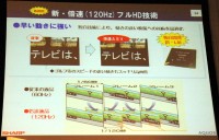 パネル解像度は1,920×1,080画素のフルHD。パネルコントラスト比は2,000対1で、同時発表のRシリーズやGX5ラインと同様、映像信号の輝度ヒストグラムをリアルタイム分析し、バックライトの明るさと液晶パネルの開口量を制御する技術により、テレビコントラスト比15,000対1を実現。また、12ビットBDE階調表示、アルゴリズムを進化させた120Hzの倍速駆動などにも対応している。