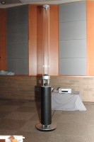 ソニーは、長さ約1メートルの有機ガラス管を振動させて音を出す新スタイルのスピーカーシステム“Sountina”「NSA-PF1」を6月20日に発売する。価格は105万円(税込)で、1本でシステムが構成される。