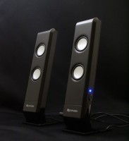 【SPEC】●スピーカインピーダンス:4Ω ●実用最大出力:3W(1.5W+1.5W) ●周波数特性:110Hz〜20KHz ●スピーカユニット:1.5インチ アルミコーンフルレンジ ●入力コネクタ:3.5φステレオミニプラグ ●ヘッドフォン端子:3.5φステレオミニジャック ●電源:ACアダプター(AC10V 500mA) ●外形寸法:86W×235H×75Dmm ●質量:620g