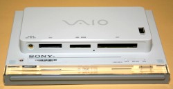 画面下部は透明になっており、スタンバイ状態や無線LANアクセスランプなどが表示されるなど、同社のVAIO type Lを思わせるクールなデザインが印象的だ。