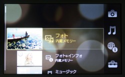 ブラウズモードとは表示したい画像ファイルや情報を直接、選択して表示するモード。ホーム画面右のメニューで、写真を表示したいのであればフォトブラウズアイコン、音楽を再生したいのであればミュージックブラウズアイコン、情報を表示したいのであればインフォブラウズアイコンを選択し、階層を辿って目的の情報を選択して表示させることができる。