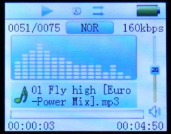 音楽再生について触れると、このプレイヤーでは電源スイッチを切った際に再生位置を記憶しないため、次に聴くときは必ず先頭から再生されてしまう。そのため、多くの曲を保存している場合、目的の曲の再生までに手間がかかる場合がある。曲の選択に関しては1曲先送りと戻りだけが前面のボタンでコントロール可能であり、リピートやランダム再生などの機能はないのがやや不便だ。音質に関しては、普通に聞ける程度の水準はクリアしている。