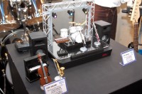 ステージの上で楽器フィギュアが各パートを演奏する「LIVEDREAM」という製品も展示されていた。10月9日の発売で、価格は29,400円。ぶっちゃけ、バンダイ「LITTLEJAMMER」から人間を取っ払った商品と考えればわかりやすい。内蔵曲は30曲で、別売りのカートリッジで楽曲の追加も可能。最大8台まで同時演奏ができる。楽器を置く位置によって音の聞こえ方が変化するというのは新しい試みだ。また、主旋律を奏でることができる楽器をセンターに置くと、メインパートを置いた楽器が演奏するというのも凝っている。楽器はジャズバンドセット、ロックバンドセットの2種類が用意される。