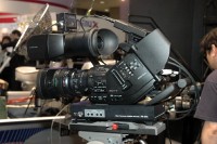 入口付近には業務用ハンディタイプカムコーダーの新モデル“XDCAM EX”「PMW-EX3」が展示され、注目を集めていた。本機は今夏発売予定で価格は1,029,000円(税込)。基本的な機能は昨年発売の「PMW-EX1」を踏襲し、1/2型フルHD3CMOSセンサーを搭載している。EX1では非対応だったレンズ交換に新たに対応するようになった。