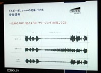 説明会ではデモも多数行われた。アメリカのケーブルテレビで放映された映画と、そのCMのデモでは、ドルビーボリュームOFFだとCMになったとたんに急にボリュームが大きくなり、びっくりしてしまうほどの音量レベル差があったが、ONにするとごく自然なレベルに調整され、まったくボリュームレベルを調整する必要がなかった。さらに、映画とバラエティー、音楽番組など、番組ジャンルによっても音量レベルはかなり異なるが、ドルビーボリュームをONにすると、それぞれのレベル差を意識する必要なく、自然に視聴を続けられる。