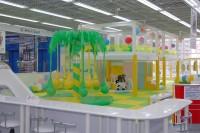 そのほか、3階はパソコンやデジカメ、電子文具など、4階にはおもちゃやゲーム、DVD/CDなどを展示。4階には遊具が置かれたキッズスペースも設けられている。また、5階のレストランコーナーは間接照明を中心にした落ち着いた雰囲気で、17店が出店。外周をぐるりと回ると全店舗が見られるよう工夫されている。