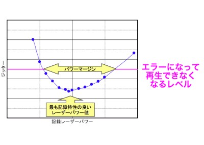 通常の記録ドライブはそのディスクに最適なレーザーパワーを検出し、記録を行っていく。何らかの理由でレーザーパワーが不安定になったとしても、パワーマージンの広いディスクであれば低ジッターの記録特性を保つことができる