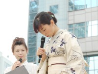 auの08年夏モデルにラインナップする、日立“Woooケータイ”「W62H」のデビュー記念イベントが都内で開催された。本製品の新CMに登場する女優の伊東美咲さんも浴衣姿で応援に駆けつけた。