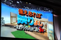 この集いは(社)デジタル放送推進協会(Dpa)が主催するもので、会場には放送事業者、メーカーなどの関係者が一同に集結。さらに地上デジタル放送普及推進メインキャラクターを務める草なぎ剛さんや、地上デジタル推進大使のNHK・民放キー局の女性アナウンサーも登場し決意表明を行った。そのほか途中にNHKの地デジ啓蒙番組の中継を挟むなど、3年後のデジタル完全移行に向けて盛大にイベントがとり行われた。