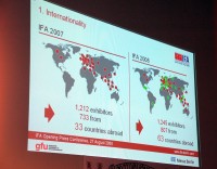 2006年に開催周期を隔年から毎年に移して以来、今年のIFA2008は「毎年開催の2回目」の開催になる。昨年のIFA2007までは出展社の数や、ショー期間の売上高など、数々の記録を塗り替えてきたが、今年のイベントはその成長を確かなものとし、世界にその魅力をアピールするための、ひとつの正念場となる。