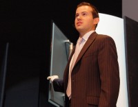 はじめにパナソニックマーケティングヨーロッパ社長の塩川順久氏が登壇し、同社のブランド戦略を説明した。塩川氏は「欧州では薄型テレビ“VIERA”やデジタルカメラ“LUMIX”が好調。昨年の第1四半期と比較して約2倍の成長を本年同期に記録できた」と語り、欧州での好調ぶりをアピールした。また同社ヘッドクオーターが2009年度中の実行を計画している“パナソニック”へのグローバルブランドの一本化についてコメントした塩川氏は、「全世界の従業員がパナソニックのブランドのもと、一丸となってグローバルエクセレント・カンパニーの実現に力を発揮できることだろう」と語った。