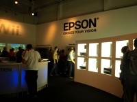 エプソンブースでは、プリンター製品の新モデルの他にプロジェクターラインアップを一斉展示する。ブースには上位機種EH-TW5000、EH-TW3800、EH-TW3000のフルHDモデルのほか、720pモデルEMP-TW680、一体型モデルEH-DM2が並んだ。