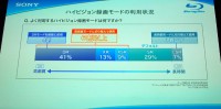 今年7月に日本リサーチセンターが行った調査によると、「ブルーレイと聞いて一番に思いつくメーカー」の1位はソニーで、83.1%の認知度を誇っているという。これについて栗田氏は「シアターを堪能する“X”、番組を楽しむ“T”など、楽しみ方別のシリーズ訴求をしたのが、ユーザーのニーズにマッチしたのだろう。『ブルーレイじゃなきゃ勿体ない』というフレーズが印象的な矢沢永吉さんのCMも大きく影響した」と説明。現在同社がNo.1シェアを誇っているBDレコーダーマーケットにおいて、引き続きシェア1位を守り、BD市場自体の拡大も図っていく考えを表明した。