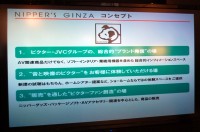 日本ビクター(株)は、9月10日よりビクタービル(東京都港区新橋)内にあるショールーム「NIPPER'S GINZA(ニッパーズギンザ)」をリニューアルオープンする(関連ニュース)。オープンを明日に控えた本日、メディア向けのプレオープンイベントが開催された。