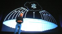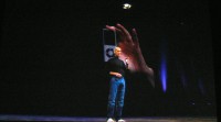 こちらは米サンフランシスコで行われた発表会の模様をビデオ上映するという形式。アップル CEOのスティーブ・ジョブズ氏は、ジーンズと黒いカットソーというおなじみの出で立ちで現れ、新iPodとiTunes 8の説明を行った。