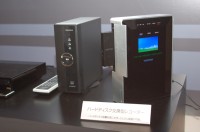 カートリッジ型のHDDを交換できるレコーダーも参考展示された。横置きと縦置きの2タイプが展示され、縦置きはHDDスロットを2基装備しているほか、側面に液晶ディスプレイやSDカードスロットも備え、デジタルフォトフレームのような使い方も想定しているのだという。ただし両機ともモックアップ展示で、発売時期や価格等はまったく決まっていないとのこと。また、同社はiVDRコンソーシアムに加盟しておらず、カートリッジ型HDDにiVDRを採用することは考えていないという。