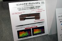 また1ビットシアターラックシステム“AQUOSオーディオ”「AN-ACX2」(製品データベース)を改良したモデルも参考出品されている。こちらはウーファーとトゥイーターの位置調整を行っているほか、アンプ部の音質設計に手を入れ、パイオニア独自のABD(Acoustic Balance Drive)技術も投入。まさしくシャープとパイオニアの技術を融合させた製品と言える。「現行のAN-ACX2も素晴らしいが、ここをこうしたらもっと良くなるだろう、というパイオニアの考えがあった。お互いの技術を持ち寄って良い製品を作れるというひとつの結果(説明員)だという。なお、パイオニアブランドからのシアターラックシステムの発売予定は現在のところ、ないとのことだ。
