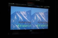 会場のメインエントランスには、先日発表されたばかりの超解像技術を搭載した“REGZA”を初めとする液晶テレビの各ラインナップが展示されている。特に超解像技術“レゾリューションプラス”については、フラグシップであるZH7000/Z7000シリーズのデモ機を使った特設展示ブースを設けるなど、力の入った紹介が行われている。