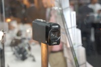 会場の一角には、“Everio”のラインナップにはない新型モデルが展示されている。こちらは「より手軽に楽しむデジタルムービー」を提案するコンセプトモデルとのこと。ブラックを基調としたコンパクトでスタイリッシュなデザインは30代の男性ユーザーをターゲットにしており、SDカードを記録媒体にして動画や静止画を気軽に撮影して楽しめる“パーソナルユース”のモデルとして訴求したい(展示説明員)とのこと。横型の試作機については撮影可能な実機によるデモが行われていたので、近い将来の商品化にも期待したいところだ。