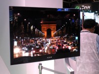 また、BRAVIAの展示では各シリーズを勢ぞろいさせるだけでなく、暗幕などで囲った暗いスペースを作りLEDバックライトと従来の蛍光管バックライトとの比較も行っている。暗い水中で漂うクラゲの様子や夜景の映像などで見ると、黒の表現力の違いがよく分かる。