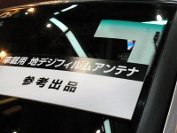 また、この高精度電波測定車のフロントガラスには、参考出展として車載用地デジフィルムアンテナが貼り付けられている。これは、その名の通りに車載用機器のためのアンテナで、フロントガラスなどに貼り付けて使用するタイプの製品。販売ルートなどを調整している段階で、まだ発売時期などは未定だとのことだ。