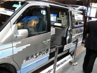 ブースには地デジ受信調査活動を行う「高精度電波測定車」も特別展示されている。放送の受信点から配線、端末機器まで地上デジタル放送に関するあらゆる調査が可能となっており、車内には様々な機器が搭載されている。