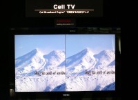 Cell TVの超解像のクオリティは、デモ映像のみの視聴だったので厳密な比較ではないものの、1,440のソースらしからぬキメ細かさがあり、地デジとは思えないクオリティを感じることが出来た。すぐ近くのREGZAによる画質デモでは、芝目のキメ細かさといい、建物の立体感といい、東芝らしいメリハリのある精細な映像を見せてくれた。