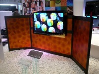 ワイヤレスではないが、ユニークな設置スタイルとして紹介したいのが東芝の「立て掛けREGZA」だ。壁に斜めにかかるようなデザインが斬新で未来的だ。「製品化は来場者の反応を見て検討したい」(説明員)とのことだった。コンセプトモデルも含め、今年は設置スタイルの提案が豊かで、未来のテレビ像として期待が高まる。
