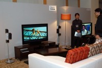 会場には4つのホームシアター体感ルームが設けられており、サラウンドの威力を実感することができる。映画ソフトを、まずテレビのスピーカーで楽しんだあと、同じソースを5.1chシアターシステム「HTZ-LX61DV」を使用して視聴。天面にユニットを搭載した「3次元音場スピーカー」を採用した本機が生み出す迫力ある音は、ブース説明員の「映画の世界に入り込んだような感覚に陥るでしょう」という言葉まったくそのとおり。「(5.1chは)全然音がちがうね。すごい」とささやきあうカップルの姿も見受けられた。