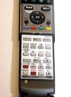 リモコンはDXシリーズ専用のもので、録画・再生関連のボタンを下部に配置。フラップを開けると、字幕や映像切換、ファミリンク操作ボタンなどが現れる。