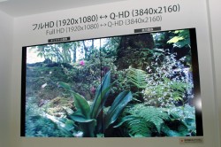 4K2Kディスプレイ自体は既に発表されたものと同様。画面をブロック分割し、フルHD映像の画素を4倍にアップコンバートする機能を備えたところが新しいトピックだ。アップコンバートの応答速度も速く、動画の映写にも十分対応できるとのこと。