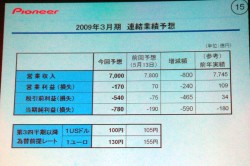 これにともない、2009年度の連結業績予想も修正。売上高は7,000億円、営業利益はマイナス1,700億円、純利益はマイナス780億円と修正した。同社は2010年度3月期の連結売り上げを9,000億円、営業利益を370億円とすることを中期経営目標として掲げていたが、こちらも見直し。新たな中期経営目標を検討中だという。