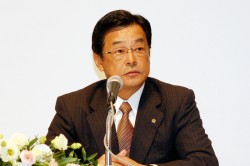 会の冒頭には須藤・小谷両氏が登壇。須藤氏は「昨今の世界的経済状況の悪化は、我々の予想を大きく上回ったものだった。しかし変化に対応できず業績を下方修正するに至ったのは社長の責任。任期半ばにしての辞任は正直忸怩たる思いがあるが、現状から一日も早く脱却するには、新しいリーダーに舵取りを託すのが最適だと判断した」と説明。後任人事について「小谷氏はカー/ホームエレクトロニクス両方の分野で仕事をしてきた人間。最近ではホームエレクトロニクス本部長として、プラズマ事業の構造改革に辣腕を発揮している。また海外法人の社長を務めた経験もあり、海外事業について理解・判断・決断できる人間だと考えた」と語った。